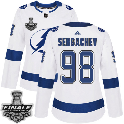 Gorgeous Adidas Lightning #98 Mikhail Sergachev White Road Authentic Women’s 2021 NHL Stanley Cup Final Patch Jersey Collectors this is a must have Add this Sabres jersey to your collection