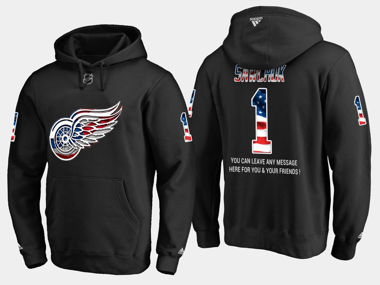 Premium Red Wings #1 Terry Sawchuk NHL Banner Wave Usa Flag Black Hoodie Limited stock Order now to cheer for the Sabres