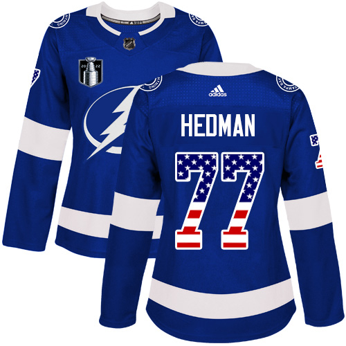 Superb Adidas Lightning #77 Victor Hedman Blue 2022 Stanley Cup Final Patch Women’s Home Authentic USA Flag Stitched NHL Jersey Limited stock Order now to cheer for the Sabres
