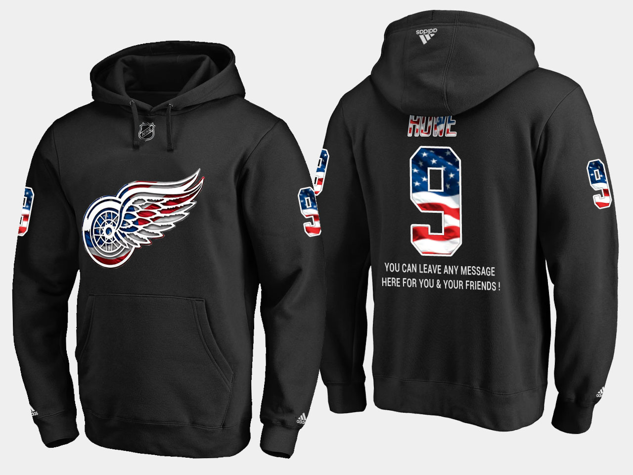 Gorgeous Red Wings #9 Gordie Howe NHL Banner Wave Usa Flag Black Hoodie Sports enthusiasts Seize the opportunity Order your Sabres jersey