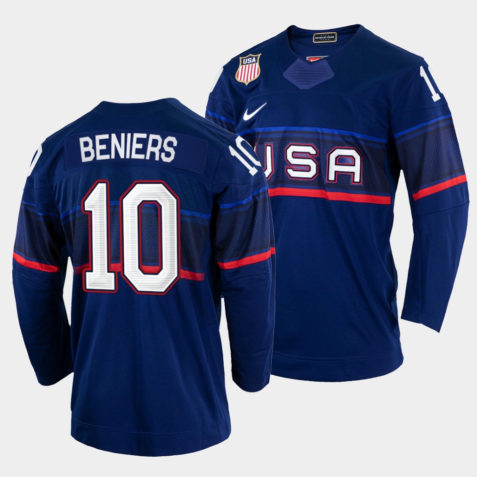 Premium USA Hockey #10 Matty Beniers Men’s 2022 Beijing Winter Olympic Away Jersey Navy For a short time available Don’t miss your chance to own a Sabres jersey
